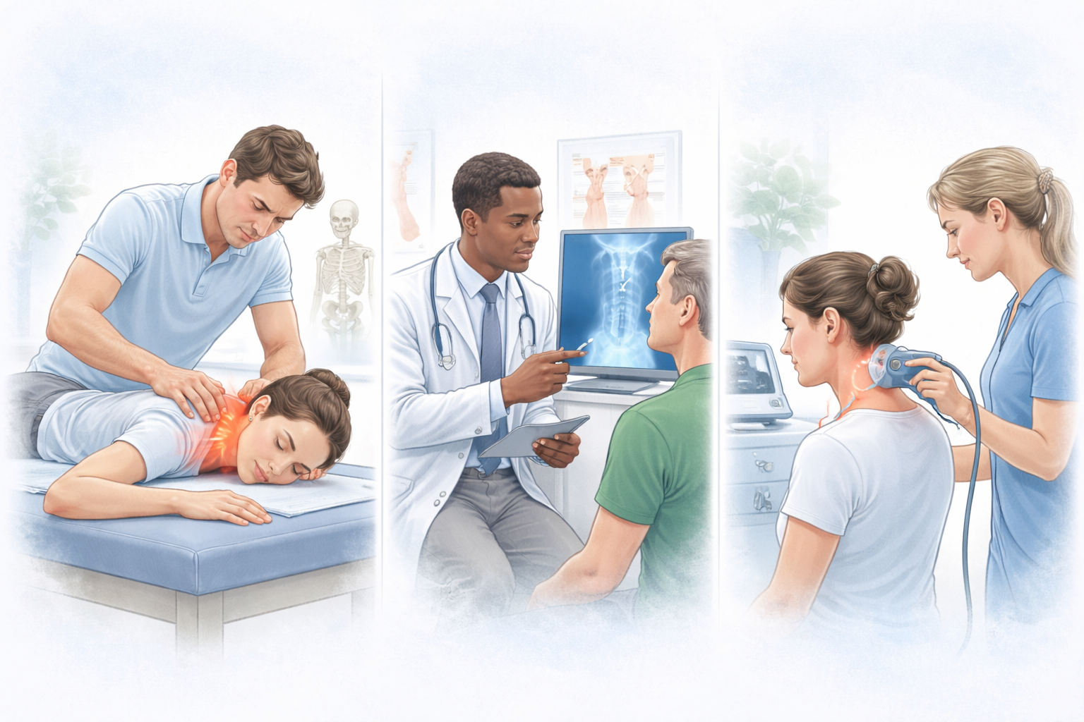 Comprehensive overview of causes, diagnostic procedures, and treatments for neck pain, including guidance on when to seek medical attention and available therapy options. -